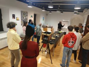 Emulsionado del papel y composición de la imagen. Exposición de 2/3 fotografías. Revelado de las fotografías. La duración del taller es de 4 horas.